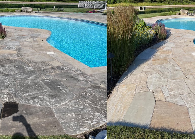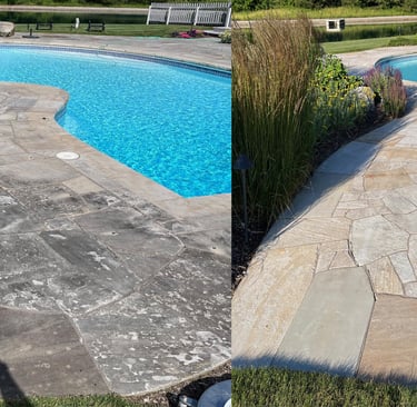 Our team uses commercial-grade equipment to safely clean concrete pool decks, steps, and patios. For delicate surfaces, we apply a low-pressure soft wash method to remove buildup without damage.